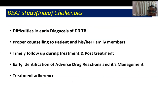 Adding a complementary perspective, Dr. Solanki Rajesh Natvarlal, principal investigator of the BEAT TB India study, shared early implementation experiences from one of the world’s most challenging DR-TB contexts. The BEAT TB India cohort included patients with low body mass index (BMI), advanced disease, and exceptionally high fluoroquinolone resistance (96%); situations where short regimens are often difficult to operationalize.
